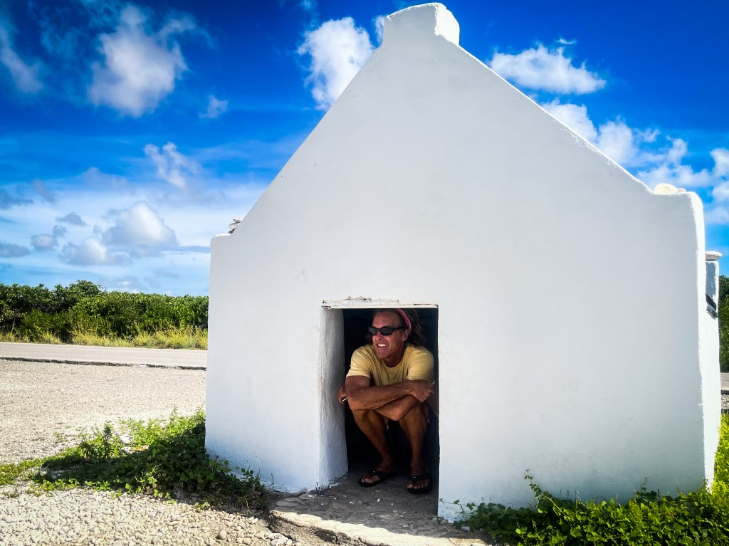 When comparing Grenada to Bonaire, we noted the difference in their historical narrative. In Grenada, plaques at tourist sites state that this factory/wall/monument/fortress was built by African slaves brought against their will to the Caribbean to be forced to work in dangerous and inhumane conditions. In Bonaire, the plaque at the salt flats describes the “small huts constructed during slavetimes as camping facilities for slaves…these huts were used as sleeping quarters and places to put away personal belongings of the working teams”. Our guidebook tells us slaves could walk back to Rincon on the weekend (30 km) to visit their families. I think Bonaire is glossing over the context that ‘slave’ and ‘salt flat’ conjure up.