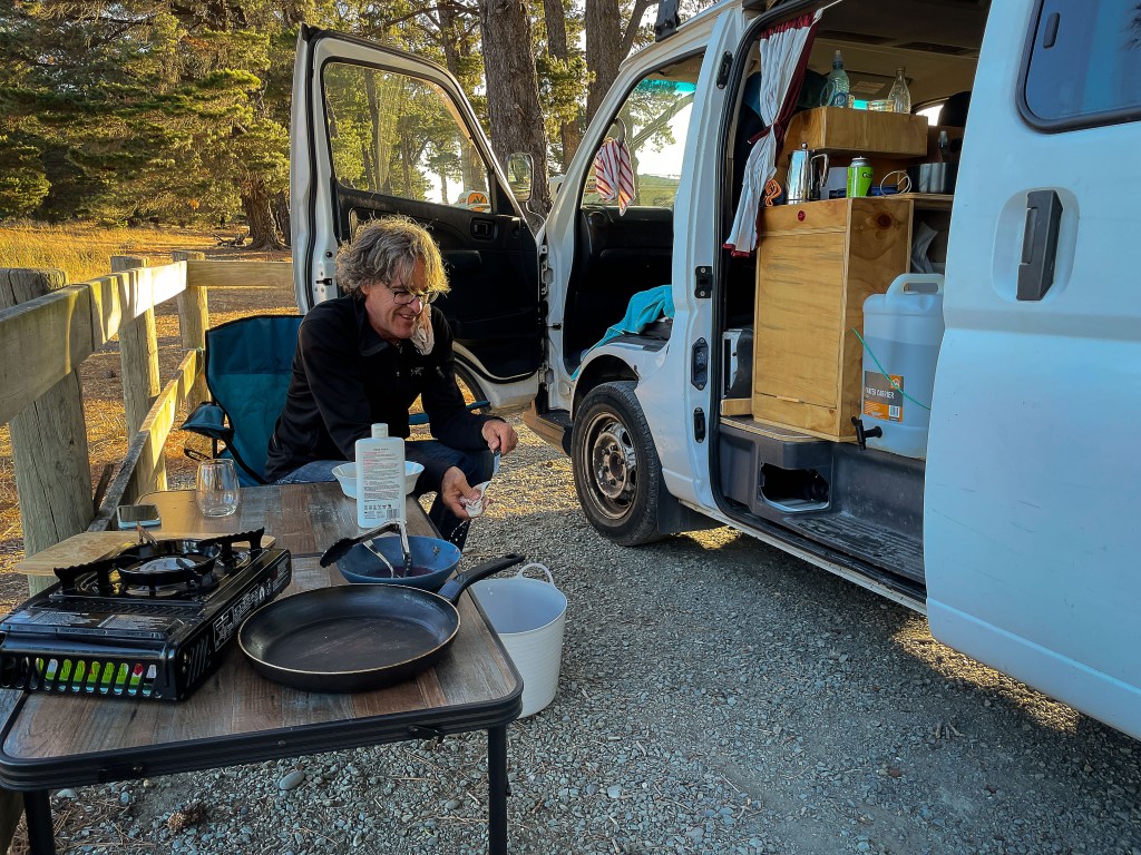 The camper van is a thing here. It’s a thing for sailors especially who come to NZ to sit out the Pacific cyclone season. In NZ, there’s an accepted culture that it’s perfectly normal for a middle-age couple to toddle around in a van, sleeping in places like parking lots or beaches, waiting in line for the single public toilet – with the rest of unwashed hippies half their age. But there is also a midlevel camper van culture, and that’s RV-ing closely resembling a North American vibe – with communal kitchens and hot-water showers. I found that returning to the boat from a stint working in the Arctic and hopping into our new camper van for a 6-week loop around New Zealand was going from one crazy extreme to another, and I had trouble adjusting to life on the road at first.