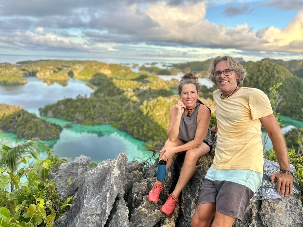 We anchored in several of the scattered islands, some with no name on the map. Dropping anchor in 30m (very deep?!), tying bow and stern lines to cliff walls to prevent us from swinging onto a reef in a squall–we learned some new skills (wear gloves when scaling limestone to set a chain loop to tie onto, use chain because any line will easily get cut on the knife-like edges of rock).