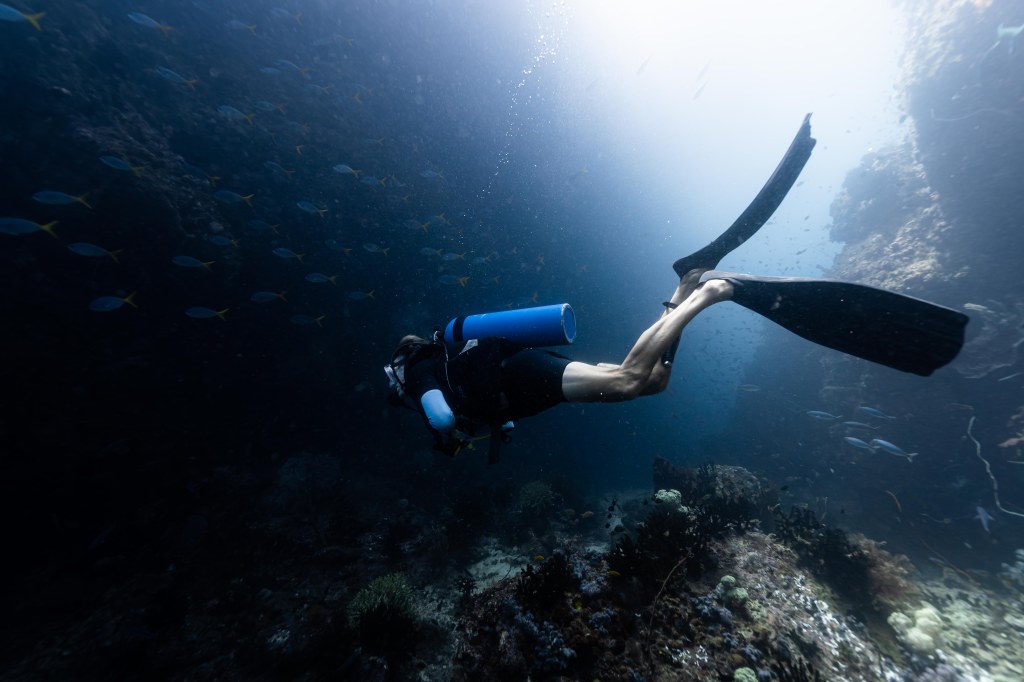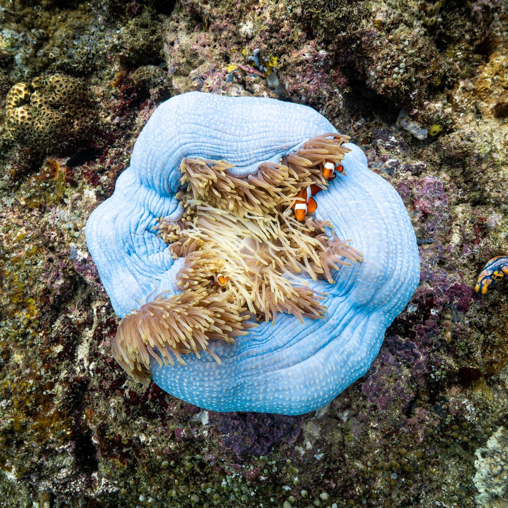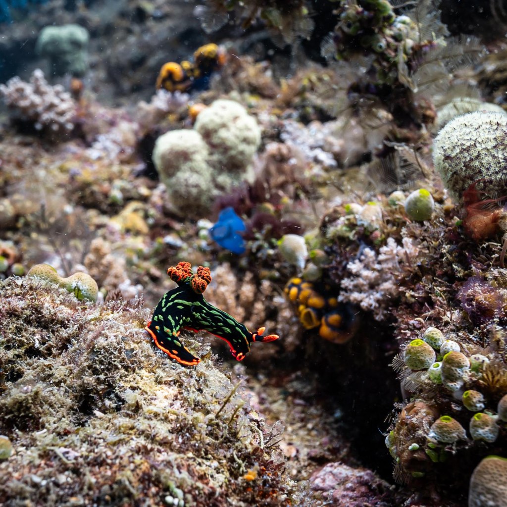 The diving is endless, exploring edges of reef where everything is different from one place to the next based on current, temp and sunlight. My favourite sites are narrow tapered islands that capture the adventure of fish capitalizing on the ripping current that bifurcates at the point. Huge bait balls of small fish form here and you can just pin yourself in one spot and watch schooling trevallies, a couple of tuna and swirling eagle rays dive in and out feeding.